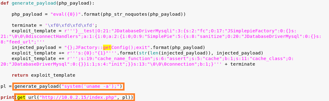generate_payload 함수를 통해서 원격 명령을 삽입.