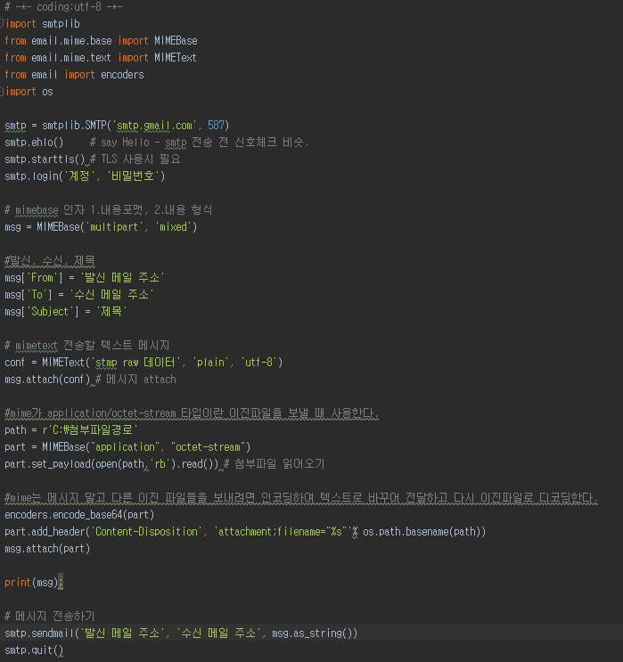 *파이썬을 통해서 메일 및 첨부파일 발송코드.