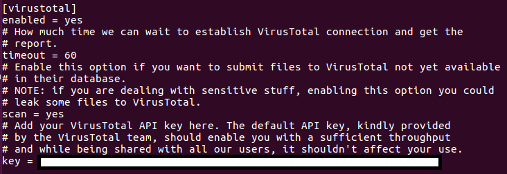 - 만약 바이러스토탈 API를 사용하고 싶다면, 바이러스 계정 API key를 conf파일에 등록필요.