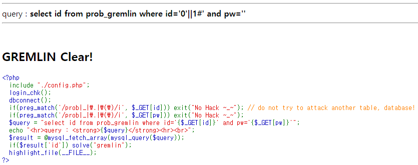 lord of sqlinjection 첫번째 문제 - GREMLIN