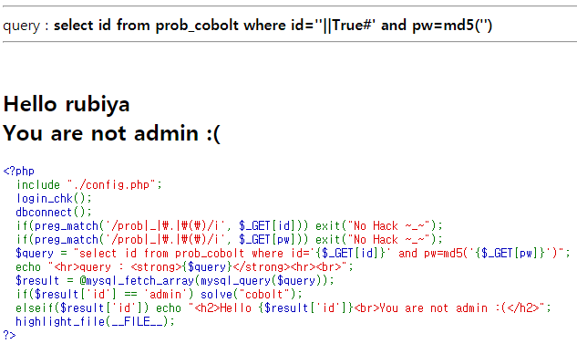 id값에 admin을 입력해야 정답을 맞출 수 있습니다.