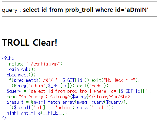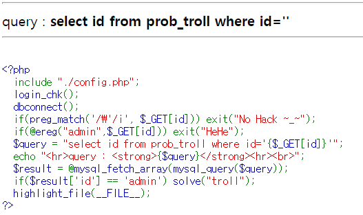 Lord of SqlInjection - 8번 TROLL