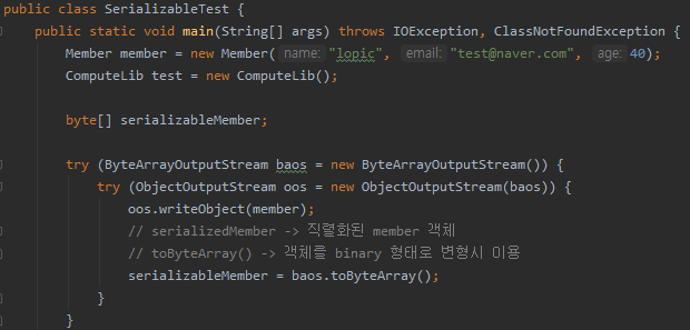 1. 직렬화는 객체의 인스턴스 정보를 전송하는 것이기 때문에 전송측과 수신측 모두 ClassPath 안에 전달될 객체에 대한 Library를 갖고 있어야한다.
