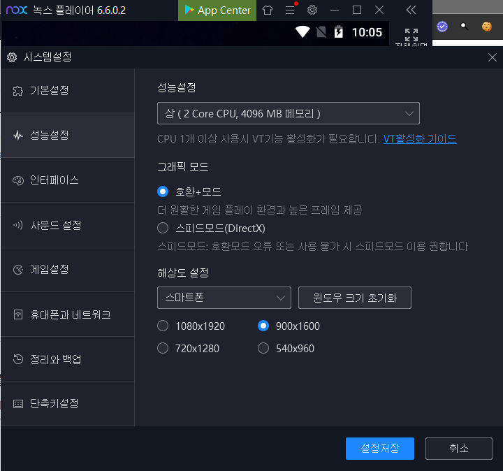 - NOX 해상도 설정을 스마트폰으로 변경