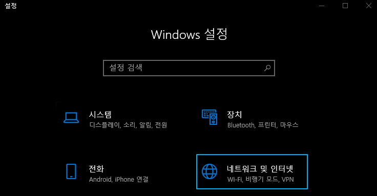- '네트워크 및 인터넷' 클릭
