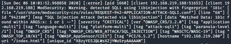 * 'var/log/apache2/error.log' 에서 탐지로그를 확인할 수 있다