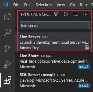 - 'Extensions' > 'Live Server' 검색