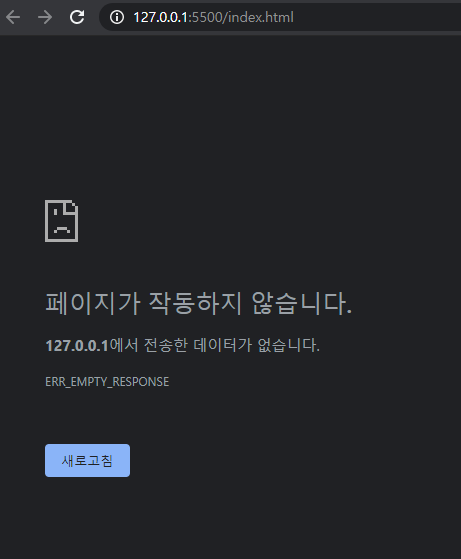 'Live Server' 실행 시 다음과 같은 에러가 발생할 수 있습니다.
