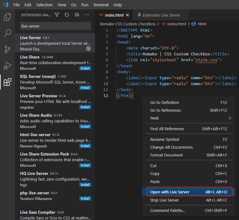 - 'Live Server' 설치