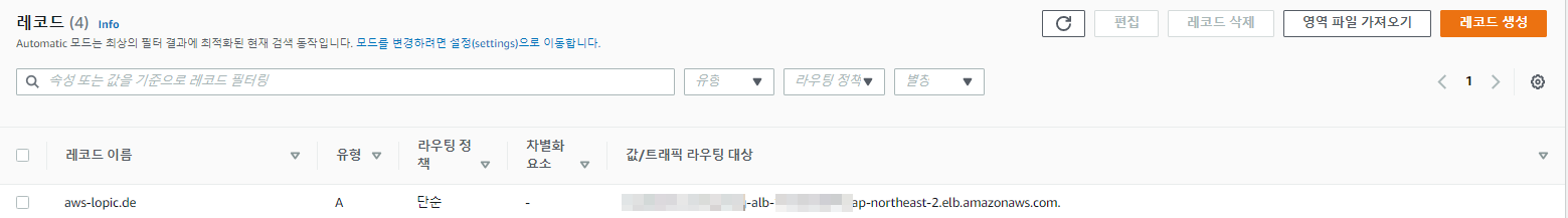 1) Route53 > 호스팅 영역 > A 유형 > 편집