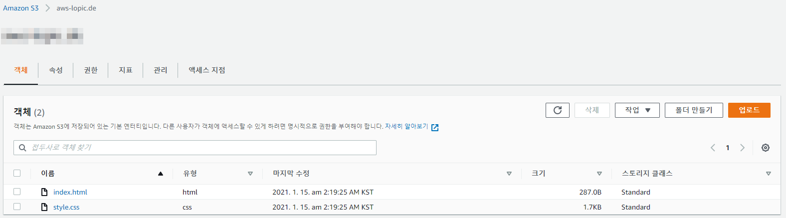 1) S3 신규 버킷 생성 후 정적 파일(html, css) 업로드