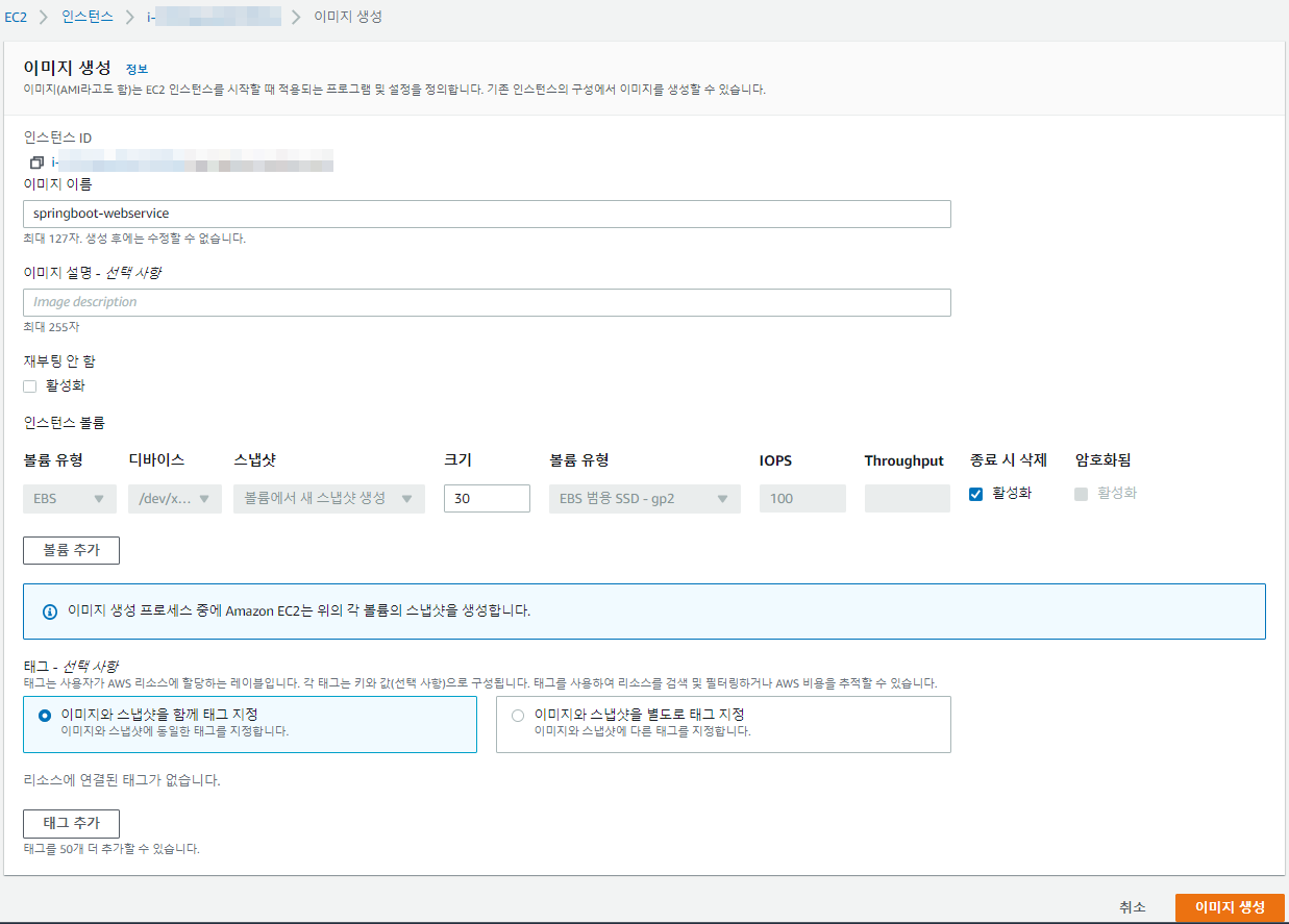 2) 이미지 이름 및 설정 확인 후 생성 (5~10분 소요)