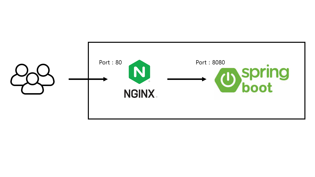 아래와 같은 구성을 하는 경우 springboot에 접속하기 위해 nginx 설정이 필요하다.