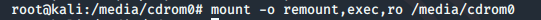 mount -o remount,exec,ro /media/cdrom0