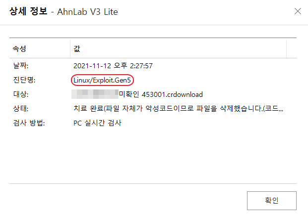 무료 백신 V3 Lite 사용 시 연구 및 업무로 인해 꼭 필요한 파일이 탐지/삭제되는 경우가 있습니다.